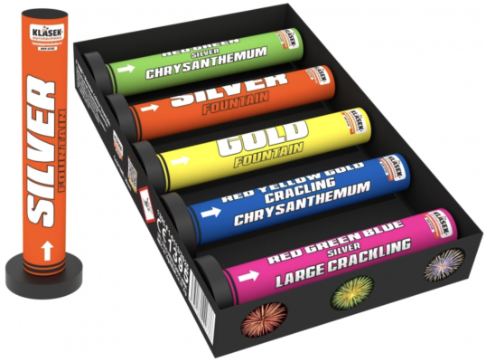 Fontánu postavíme na pevnou podložku. Během tří až šesti vteřin po zapálení se objeví různé světelné efekty.Efekt: stříbrná fontána, crac...